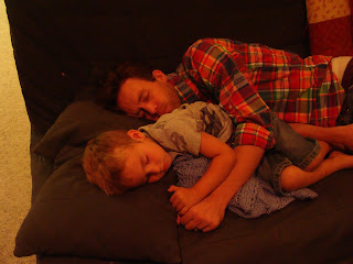 | Henry and Daddy napping together - I remember this day. It was a Saturday, and sweet Millicent was sleeping in her crib- All my favorite people napping at the same time! (I got soooo much done! :)) |